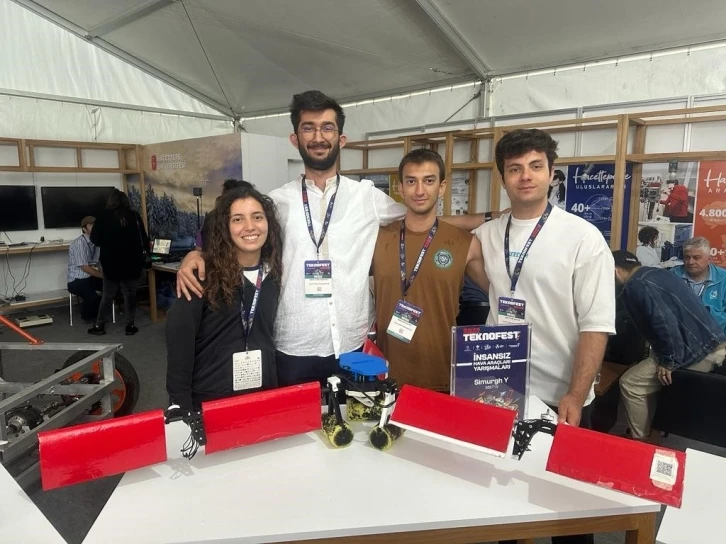 8 kişilik yaş ortalaması 20 olan genç bir takım olduklarını ve yerli yatırımcılardan birçok teklif aldıklarını belirten takım üyesi Umutcan Akyüz, “Biz yaptığımız projelerle hem TEKNOFEST’e hem de uluslararası projelerde yer almaktayız. Burada gördüğümüz dronumuz deprem ve sel gibi baz istasyonlarının çalışamadığı felaketlerde kullanılması için tasarlanan bir dron. Bilindik dron tasarımlarında farklı olan bu dron, havada asılı kalabilmek için tasarlandı. Dronumuz baz istasyonu görevi gördüğü için havada uzun süre kalması çok önemli. Ona göre bir tasarım belirledik. TEKNOFEST yarışmasına dronumuzla katıldık ve 9. olarak performans ödülü kazandık. Seri üretime geçilmesi için bazı testlerden geçilmesi gerekiyor ama bizim yaptığımız testlerden çok olumlu geri dönüşler aldık. Dronumuz yaklaşık 3 buçuk saat havada kalabiliyor. Yarım saatlik bir şarj ile yüzde yüz şarj olup yeniden 3 buçuk saatlik bir performans gösterebiliyor” ifadelerini kullandı