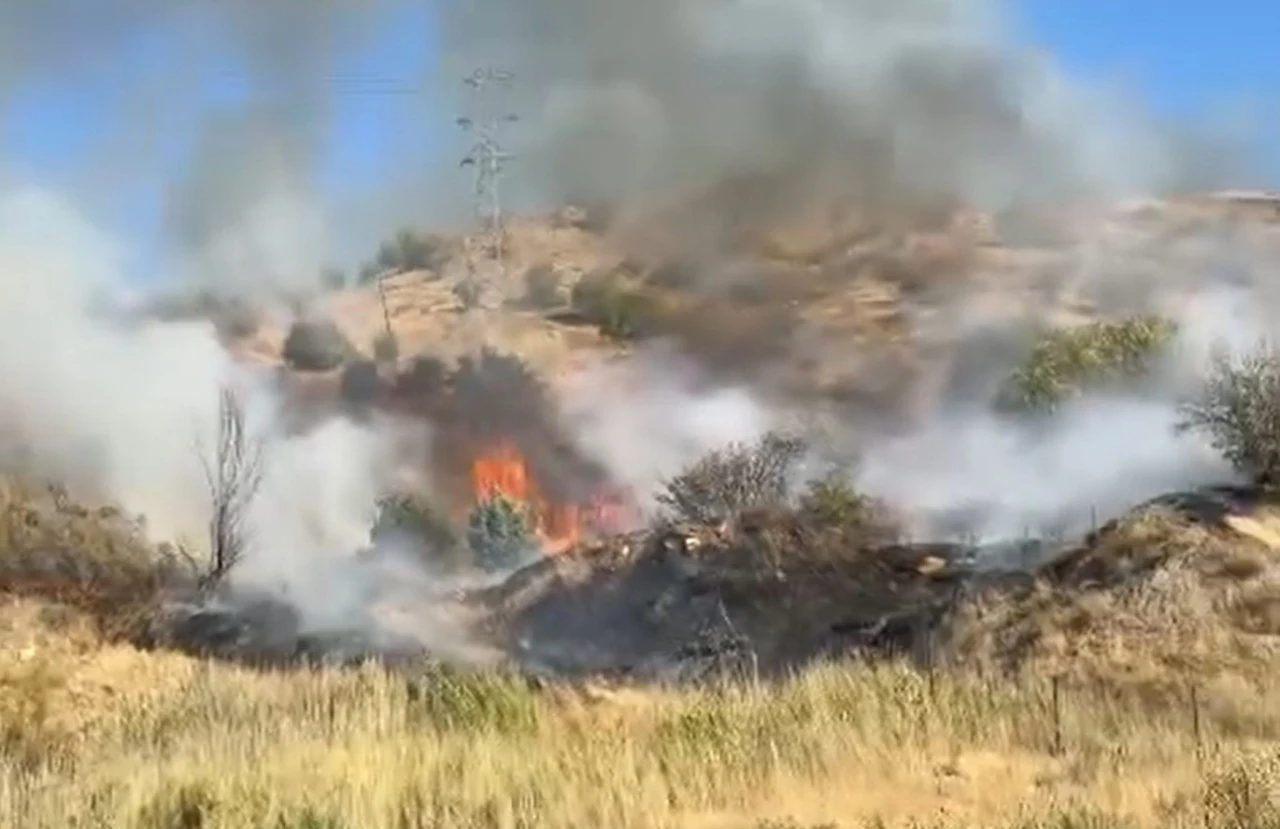 Yangının halen devam ettiği öğrenilirken, bölgeye ekiplerin intikal etmesi bekleniyor. Yangın, yolda geçenler tarafından görüntülendi.
