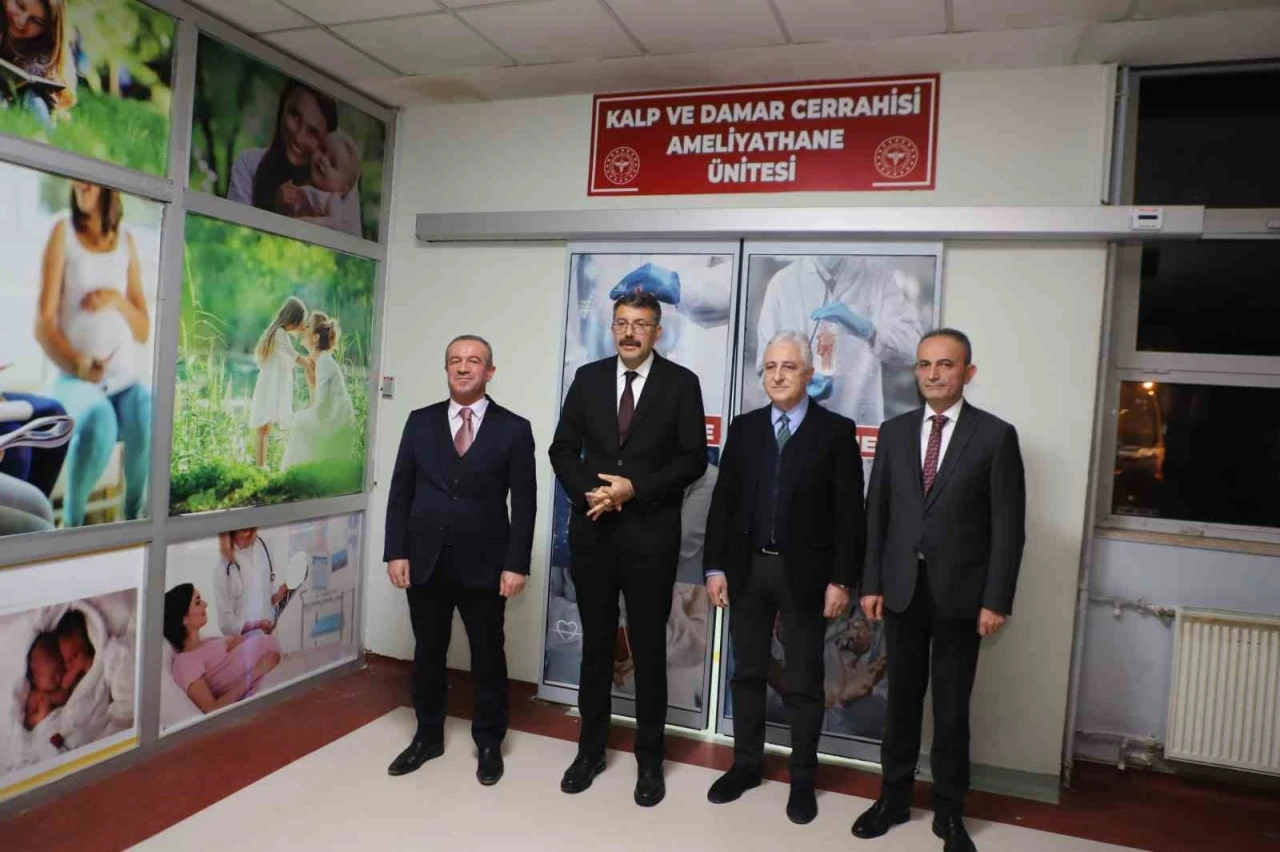 Ankara Bilkent Şehir Hastanesi Kalp ve Damar Hastanesi Başhekimi Kalp ve Damar Cerrahisi Profesörü Mehmet Ali Özatik ve 9 kişilik uzman ekip, Hakkari’de ilk kez bypass ve kalp kapak değişimi ameliyatlarını gerçekleştirdi. Ameliyat sonrası Hakkari Valisi Ali Çelik, Kalp ve Damar Cerrahisi Profesörü Mehmet Ali Özatik ile 9 kişilik ekibi hastanede ziyaret etti. Ameliyatlarla ilgili açıklama yapan Vali Çelik, Ankara Bilkent Şehir Hastanesi Kalp ve Damar Hastanesi Başhekimi Kalp ve Damar Cerrahisi Profesörü Mehmet Ali Özatik ve gelen uzman ekibe teşekkür ediyorum. Yaklaşık bundan bir yıl önce Sağlık Bakanımızı ziyaret ettiğimizde açık kalp ameliyatları dahil olmak üzere yapılacak bir ünitenin hem yoğun bakımı hem de yoğun bakımın hem de ameliyatların yapılması talebimizi iletmiştik. Sağlık Bakanımız Mehmet Ali beyi arayarak kendisi ve ekibinin Hakkari Devlet Hastanesinde açık kalp ameliyatları dahil, baypas ameliyatlarının yapılabileceği ve kapalı kalp ameliyatlarının yapılabileceği bir ünitenin, ameliyathanenin kazandırılması hayata geçti. Ben emeği geçen değerli Başhekimiz Mehmet Ali beye ve onun değerli ekibine çok teşekkür ediyorum. Hakkari’de bir hastamızın baypas ameliyatı, bir hastamızın ise kalp kapakçılığı değiştirildiği ameliyatı Hakkari’de gerçekleştirildi. Bizler açısından önemli. 81 il içerisinde hastanemizde de şifa bulunması bizleri sevindirmiştir. Burada Hakkari il sağlık müdürü ve başhekimine de teşekkür ediyorum. Hakkari’ye gelen uzman ekibe Hakkarili hemşerilerimin adına şükranlarımı sunuyorum. Sağlık Bakanı ve bakanlığımıza teşekkür ediyorum. Hastanemiz her yönünden kapasitesini değiştirmesi konusunda desteklerini esirgemiyorlar. Yüksekova Devlet Hastanemizin anjiyo ünitesi daha önce kurulmuştu. Ekipman alımları tamamlandı" dedi.