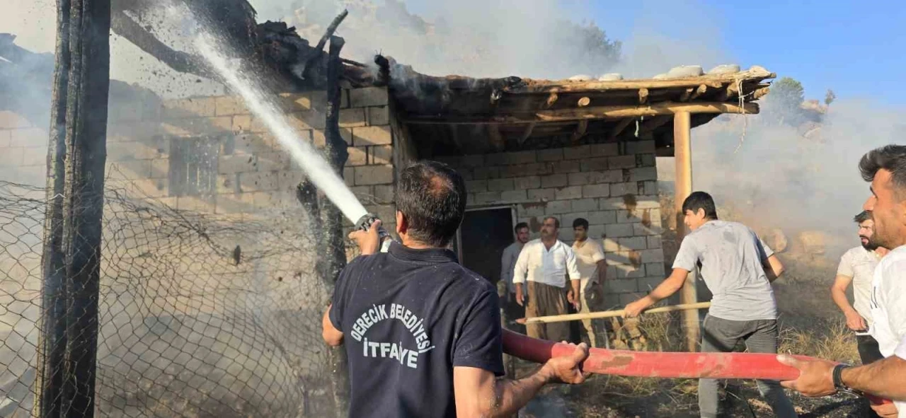Hakkari’nin Derecik ilçesinde çıkan yangında bin 100 balya ot ile 150 torba saman yandı.
