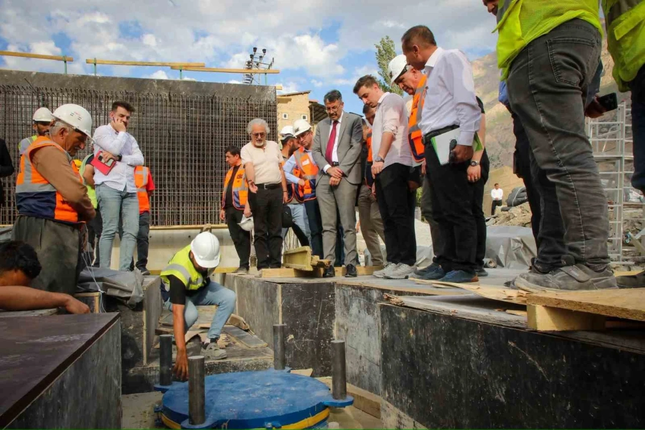 Hakkari Valisi Ali Çelik, sismik izolatör teknolojisinin kullanılacağı 100 yataklı Kadın Doğum ve Çocuk Hastanesi’nin inşaatında incelemelerde bulundu.