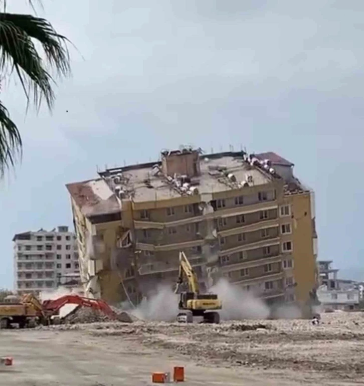 Kahramanmaraş merkezli depremlerde ağır hasar alan Hatay’da yıkım ve enkaz kaldırma çalışmaları aralıksız sürüyor. Enkazın büyük bir bölümünün kaldırıldığı Antakya’da binalar; dinamit ve iş makinesiyle yıkılıyor. İlçe merkezi 75. Yıl Bulvarı üzerinde bulunan 9 katlı bir bina da iş makinesiyle, halat bağlanarak yıkıldı. Kontrollü olarak gerçekleştirilen yıkımda herhangi bir sorun yaşanmadı. Yıkım anı cep telefonu kamerasına yansıdı.