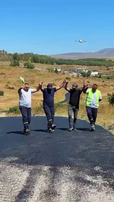 Ardahan il Özel idaresine ait asfalt ekibi Hanak ilçesinde köy yollarını yamalama çalışmalarını yaparken her biten köy yolu için çalışan ekip halay çekmesi sosyal medyada gündem oldu.
