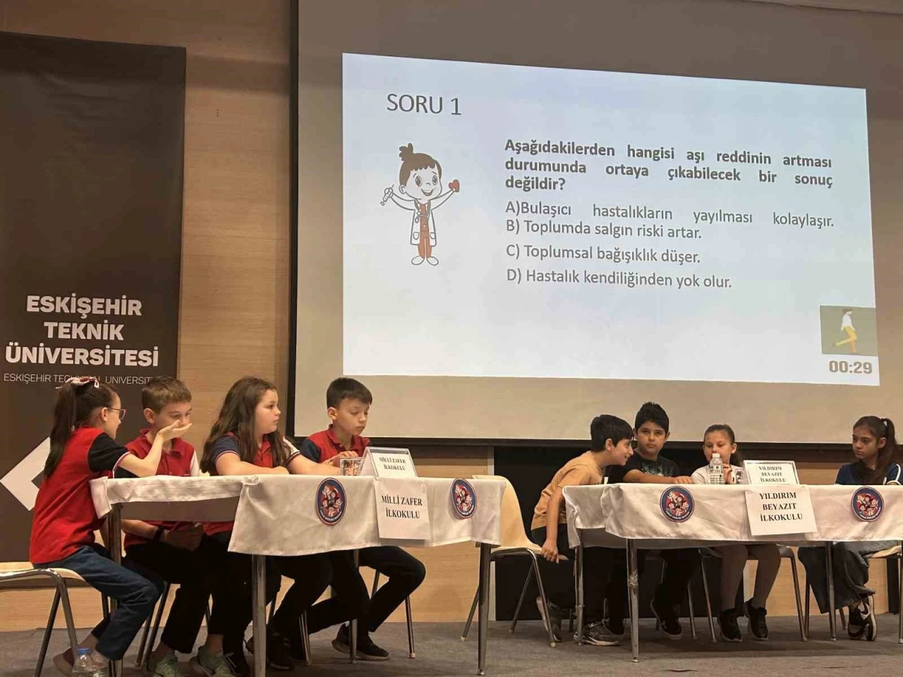 Yarışma Reşat Benli İlkokulu, Yıldırım Beyazıt İlkokulu ve Milli Zafer İlkokulu’ndan pek çok öğrenci ve öğretmenin katılımlarıyla, Eskişehir Teknik Üniversitesi Konferans Salonu’nda gerçekleştirildi. Eskişehir İl Sağlık Müdürlüğü ve İl Milli Eğitim Müdürlüğü’nün çalışmalarıyla hayata geçirilen Halk Sağlığı Projesi’yle birlikte çocukların farkındalığının artırılarak, bilinçli ve sağlıklı yaşam alışkanlığı kazanmasının amaçlanıyor. "Öğrencilere eğitimler verilmiş ve sağlık bilinçleri daha da pekiştirilmiştir"