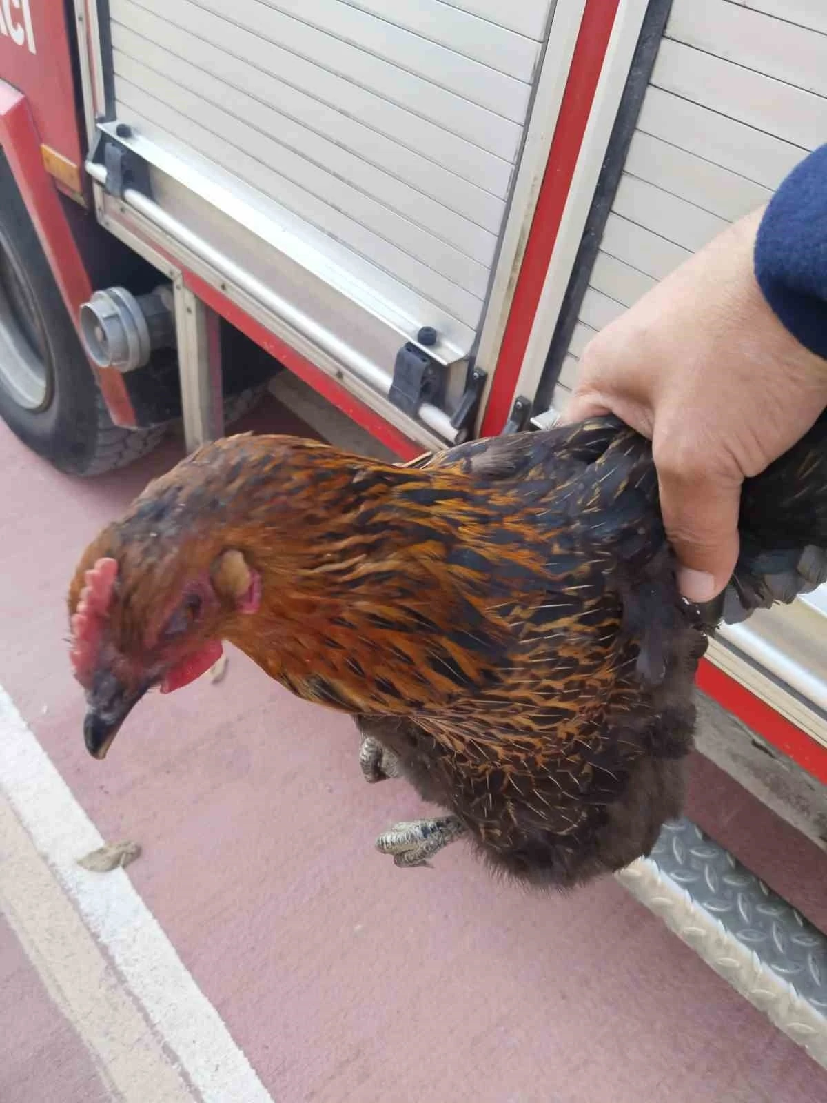 Gümüşhane Karşıyaka Mahallesi’nde Harşit Çayı’na düşen ve bulunduğu yerden çıkamayan tavuğu gören vatandaşlar durumu itfaiyeye bildirdi. İhbar üzerine kısa sürede bölgeye gelen Gümüşhane Belediyesi itfaiye ekiplerinden Mustafa Soydaş, merdiven yardımıyla çaya inerek tavuğu bulunduğu yerden aldı. Kurtarılan tavuk daha sonra sahibine teslim edildi.