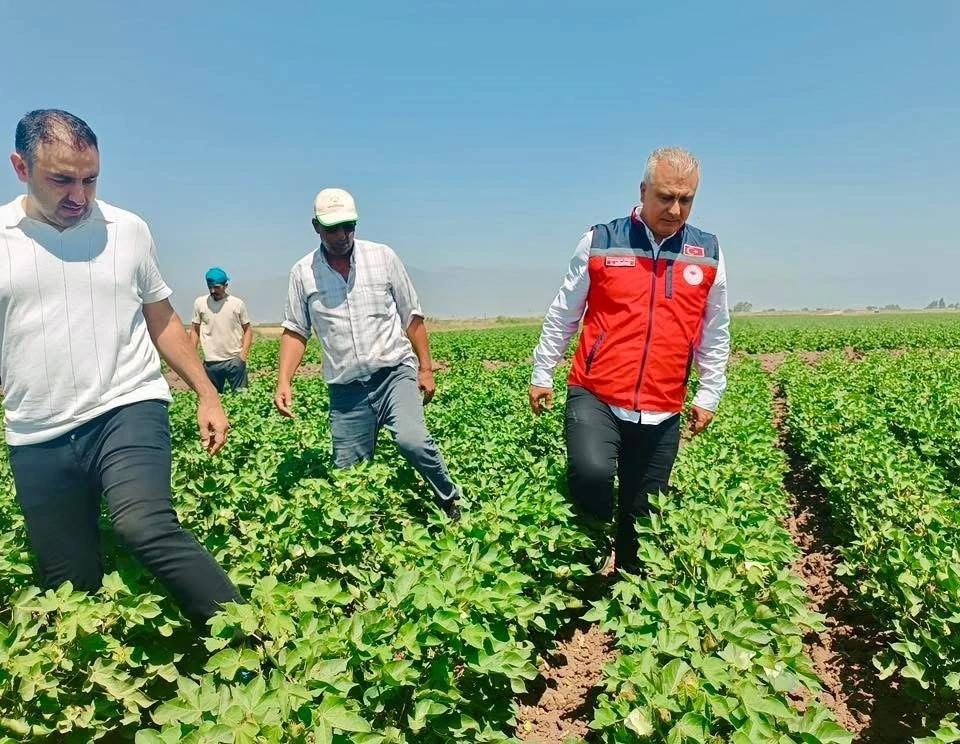 Hatay’da Tarım ve Orman İl Müdürü Abdurrahman Türkmen, pamuk tohumlarının ekili olduğu arazilerde incelemelerde bulundu.