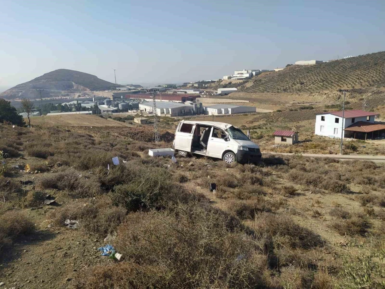 Hatay’da sürücüsünün kontrolünden çıkarak şarampole devrilen minibüsün sürücüsü yaralandı.