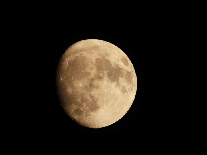 Ayın evreleri olan ilk dördün ile dolunay arasında oluşan şişkin ay, Hatay’ın Samandağ ilçesi semalarında görsel şölen oluşturdu.