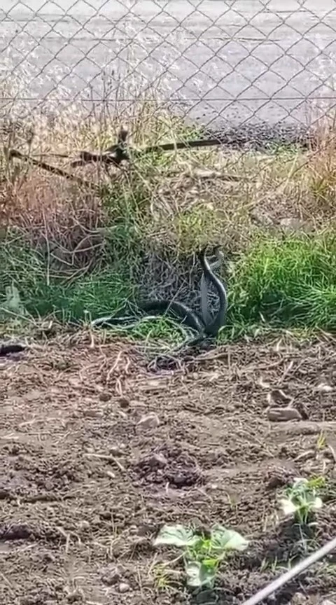 Hatay’ın Dörtyol ilçesinde boş arazide 2 yılanın çiftleşme dansı vatandaş tarafından kamerayla kaydedildi.