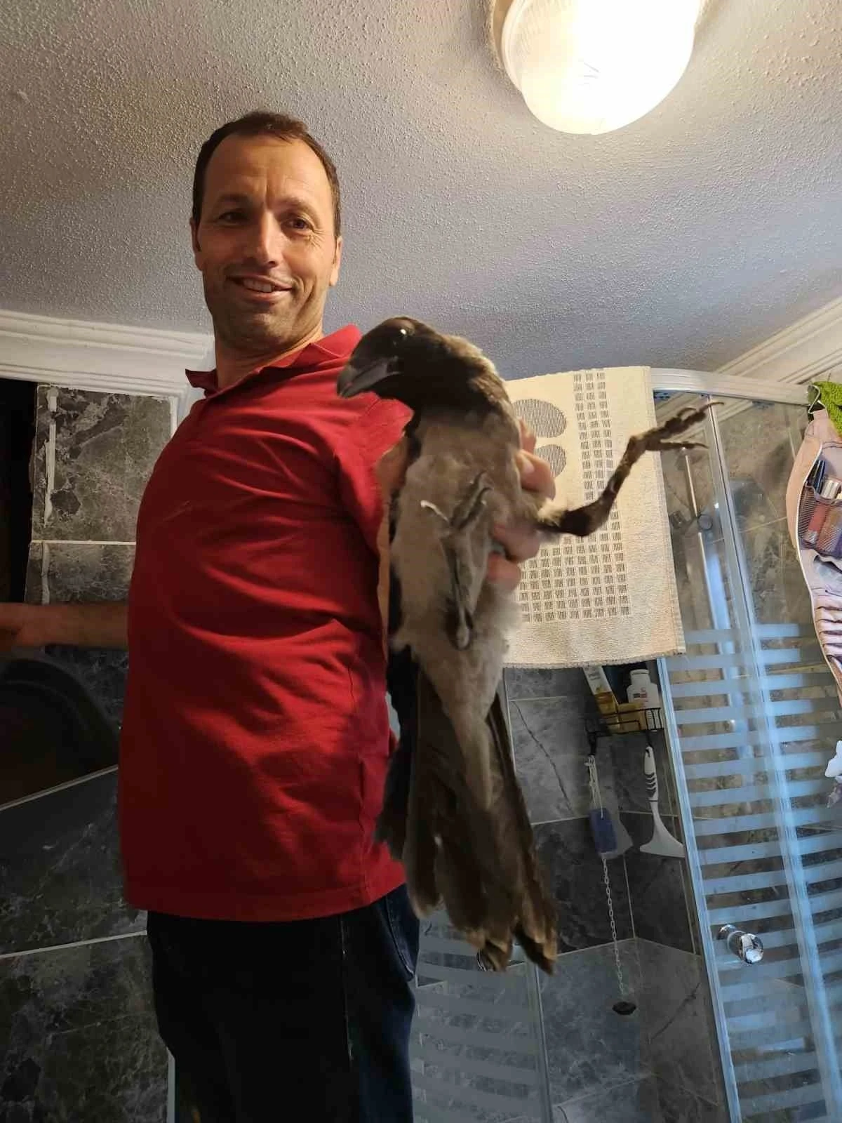 Edinilen bilgiye göre, Cide ilçesi Kasaba Mahallesi’nde yaşayan Murat Acar, evinin havalandırma kısmından gelen sesleri fark etti. Havalandırma boşluğunun kapağını açan Acar, boşluğa bir karganın düştüğünü gördü. Kendi imkanlarıyla kargayı çıkartan Acar, daha sonra kendi imkanlarıyla su içirdi.