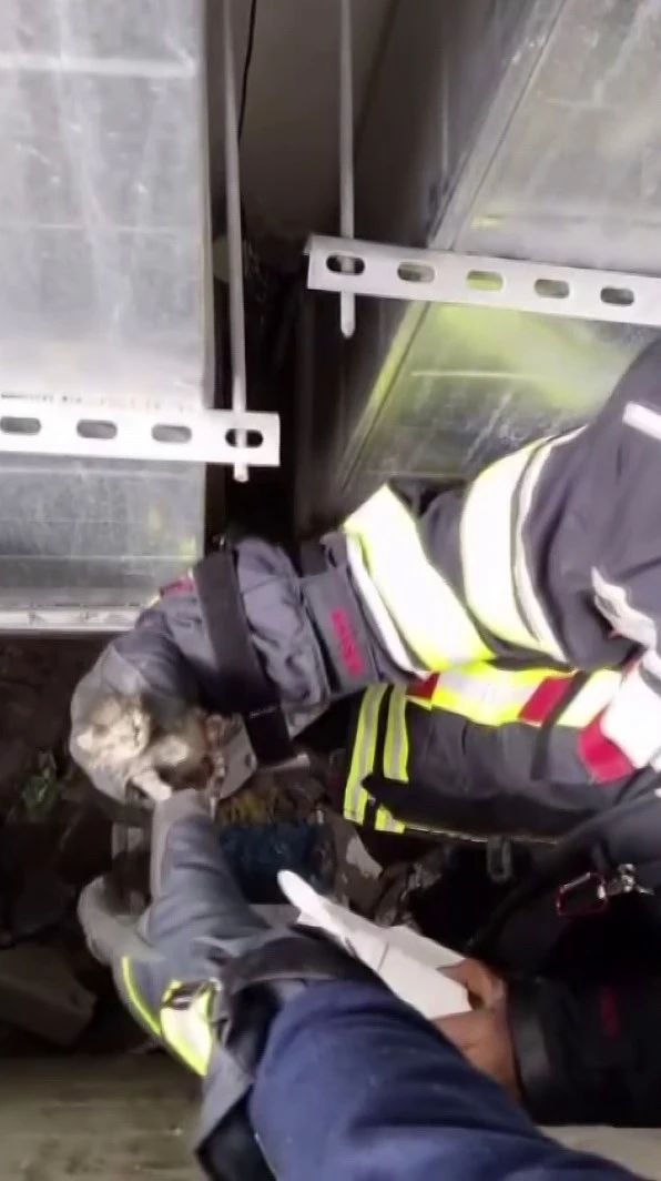 Kayseri’nin Kocasinan ilçesinde havalandırma boşluğuna düşen yavru kedi, itfaiye ekiplerince kurtarıldı.