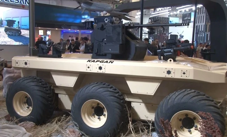 Kapgan hakkında bilgi veren Ürün Geliştirme ve Üretim Direktörü Veysel Ataoğlu, “Kapgan bizim orta sınıf ikinci seviye insansız kara aracımız. Özellikle biliyorsunuz HAVELSAN’ın Dijital Birlik konsepti var. Bu Dijital Birlik konseptinin ağır üyesi diyebiliriz. Kapgan yaklaşık 2,5-3 ton ağırlığında faydalı yüküyle birlikte 3 tona kadar çıkabiliyor. Yaklaşık 500 kilometrelik bir menzili var. Bunun 100 kilometresi sessiz motta diyoruz. Ayrıca üzerine farklı tip faydalı yük silahlar entegre edilebiliyor. Şu anda da mevcutta yeni robotik x’in 30 milimlik 30, çarpı 113 metre iki modeli var. Bu silahta bildiğiniz üzere yaklaşık 2 kilometreden etkili bir vuruş kabiliyetine sahip 25 milimlik söz edilebiliyor. Tabii bu platformları biz üretmiyoruz. Bunlarla çalışan alt yüklenici firmalarımız var, iş ortaklarımız var. Onlarla birlikte çalışıyoruz. Akıl katıyoruz, bunu bir robot haline getiriyoruz. Kapgan da böyle bir robot ve yakında Kapgan’nın tekerlekli versiyonunun yanında paletli versiyonunu da görebileceksiniz” diye konuştu.