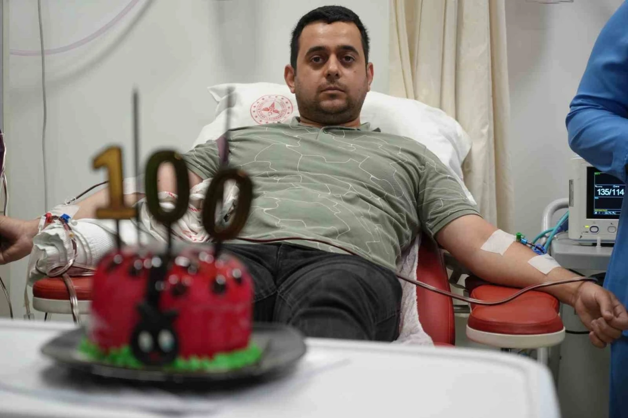 Merkez çalışanları 100. donör işlemini pasta keserek kutladı. Hematoloji Dr. Üyesi Öznur Aydın, "Kök hücre için donör olmak çok kıymetli bir işlemdir. Ben tüm vericilerimiz teşekkür ediyorum. Bu işlem özellikle lösemi hastalarının tedavisinde hayat kurtarıcı bir işlemdir" dedi.