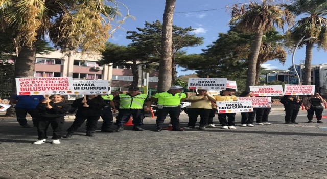 Marmaris’te, yaya geçitlerinde yayalara öncelik tanınması ve vatandaşlarda farkındalık oluşturulması amacıyla, ‘HAYATA SAYGI DURUŞU’ etkinliği düzenlendi. Etkinlikte, emniyet ve jandarma ekipleri ile öğrenciler, yaya geçitlerinde buluşarak trafikte yaya önceliğine dikkat çekti. Öğrenciler, ‘HAYATA SAYGI DURUŞU’ yazılı dövizler taşıdı. Emniyet ve jandarma ekipleri tarafından sürücüler bilgilendirildi, broşürler dağıtıldı. Sahil şeridine afişler asıldı.