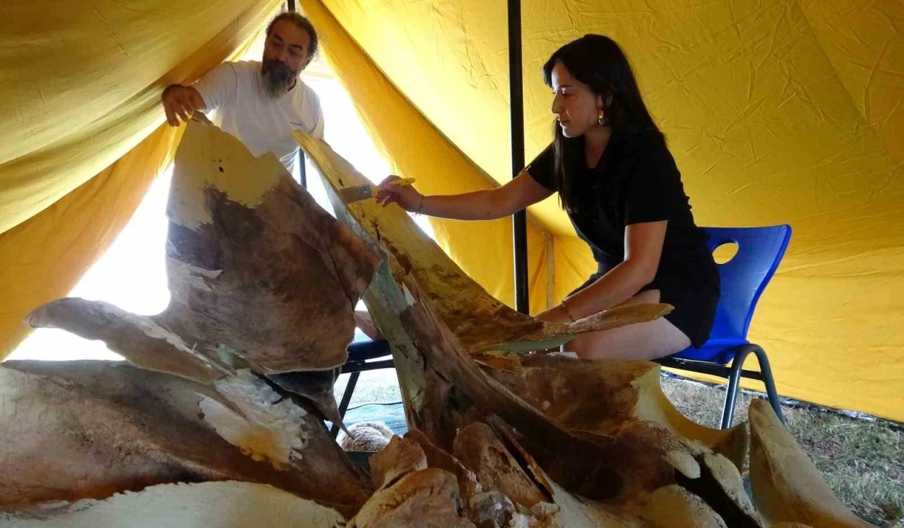 Hem kazı sürecine hem de iskeletin yapıştırma aşamasına gönüllü olarak katılan Fen-Edebiyat Fakültesi Biyoloji Bölümü öğrencisi Ayşe Alkaş, "Yaklaşık bir hafta süren kazı çalışmasında tüm kemiklerini, omurlarını ve kafatasını çıkardık. Şu anda birleştirme aşamasındayız, kemikleri sıralıyor, omurları birleştiriyoruz. Bazı kemiklerde kırıklar, bazı yerlerde deformasyonlar mevcut. Öğrencilerin bu sürece aktif olarak katılması da çok güzel. Benim için de ilk kez böyle bir deneyim oldu. Bu çalışma, kemik yapısını görmeyi, nasıl birleştirileceğini ve konstrüksiyon aşamasında ne yapılacağını anlamamızı sağlıyor. Sürecin tamamı bize çok şey öğretiyor. Daha önce hiç bu şekilde kemiklerle çalışmamıştım, o yüzden beni de mutlu etti" diyerek düşüncelerini anlattı.