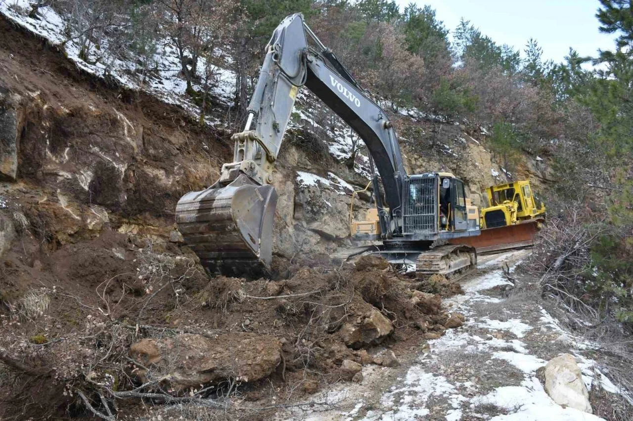 Karabük’ün Ovacık ilçesinde heyelan nedeniyle kapanan köy yolunun yeniden ulaşıma açılması için çalışma başlatıldı.