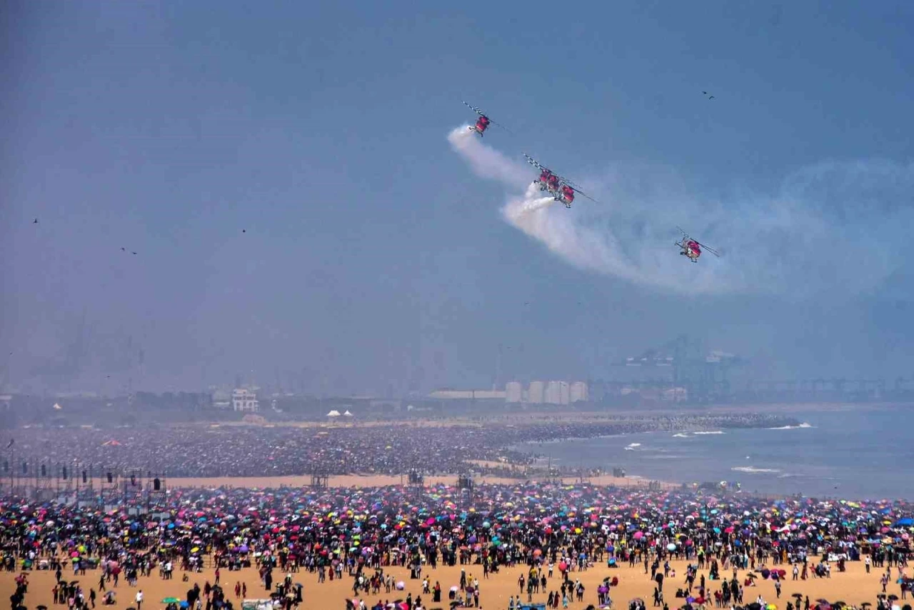 Hindistan’ın Chennai kentinde dün Hindistan Hava Kuvvetleri’nin 92. yıl dönümü çerçevesinde düzenlenen hava gösterisine binlerce kişi akın etti. Marina Plajında gerçekleştirilen gösteriyi en az 1 buçuk milyon kişi izledi. Organizasyonun yetersiz kalması nedeniyle tren istasyonlarında izdiham yaşandı. Hava sıcaklığının 35 dereceye ulaşması sonucu onlarca kişi hastanelik oldu, en az 5 kişi ise sıcak çarpması sonucu hayatını kaybetti.
