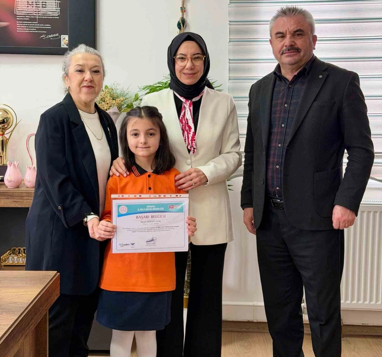 Müdür Pelin Solak, elde edilen başarıdan dolayı öğrenci Nermin Koç’u ve Sınıf Öğretmeni Semra Bülbül’ü tebrik ederek, başarılarının devamını diledi.