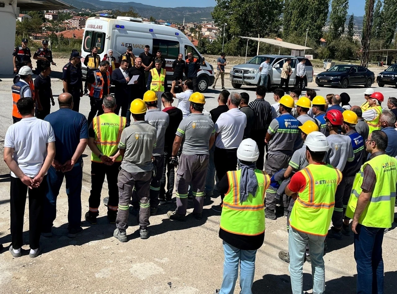 Emet Bor İşletme Müdürlüğüne bağlı Hisarcık ilçesi konsantratör tesislerinde 2. seviye yer üstü maden tatbikatı gerçekleştirildi.