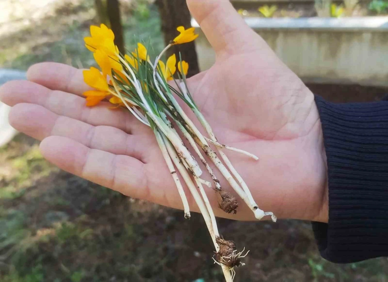 Kütahya’nın Hisarcık ilçesinde Ocak ayı olmasına rağmen havaların ılıman gitmesi baharın müjdecisi çiğdemlerin erken çiçek açmasına neden oldu.