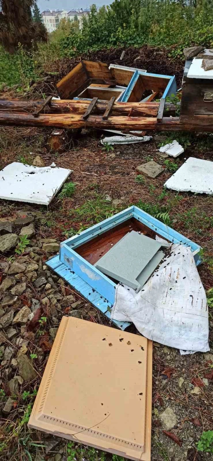 Kastamonu’nun İnebolu ilçesinde merkeze kadar inen ayı, arı kovanlarını parçaladı.