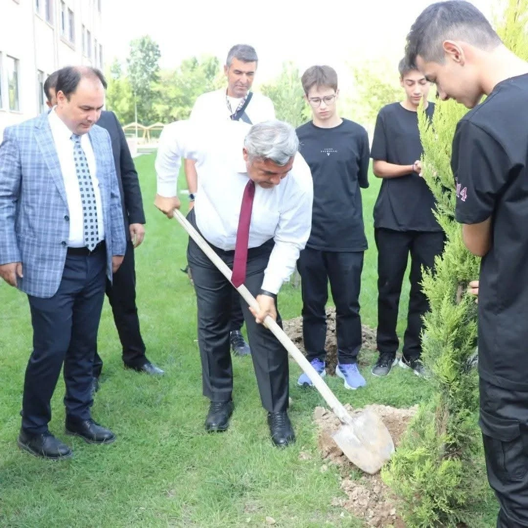 Sunumların ardından okul bahçesinde düzenlenen fidan dikim törenine geçildi.