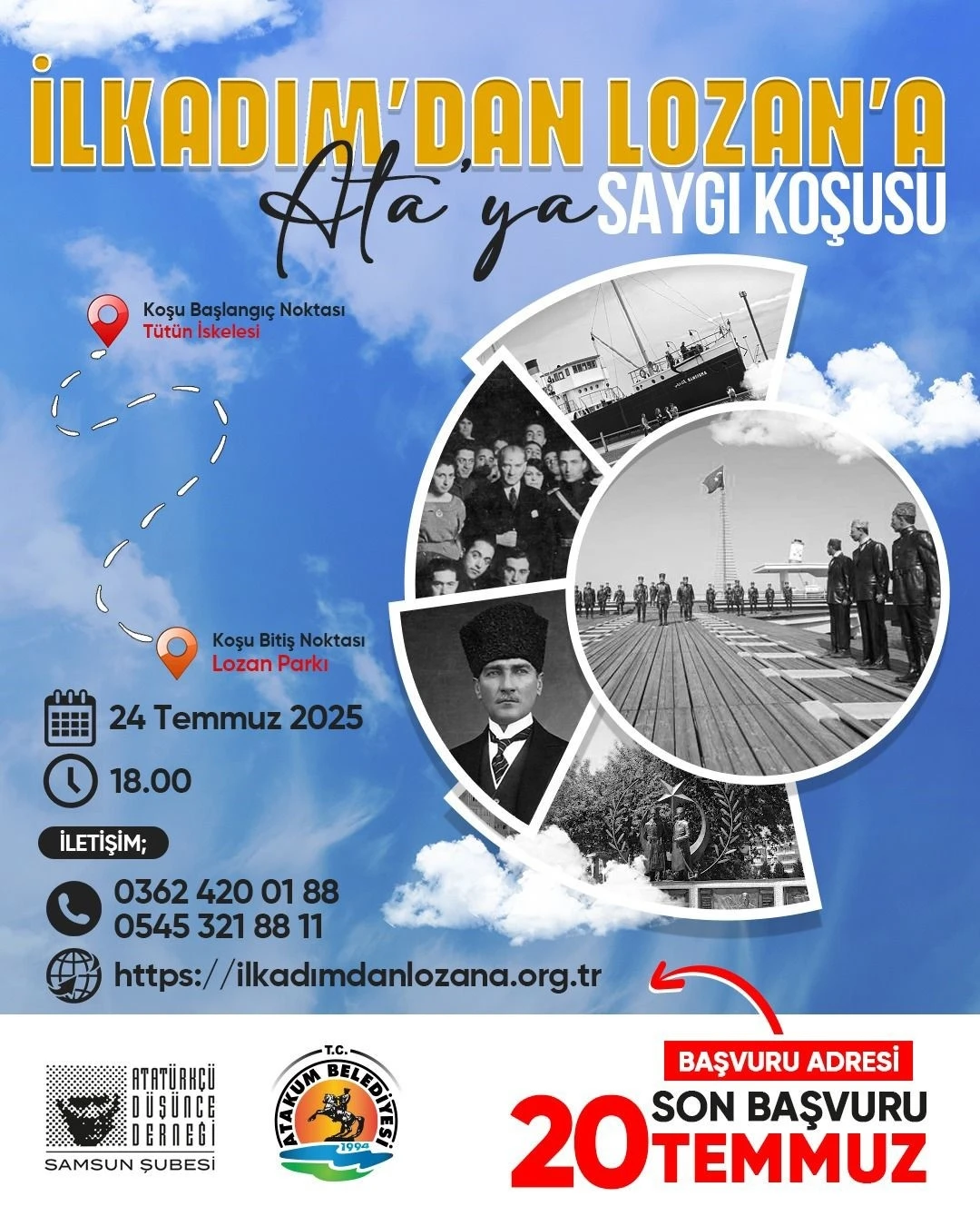 Atakum Belediyesi tarafından, Lozan Barış Antlaşması’nın 102. yıl dönümünde ‘İlkadım’dan Lozan’a Ata’ya saygı koşusu’ yapılacak. Organizasyon, Gazi Mustafa Kemal Atatürk’ün Kurtuluş Savaşı’nı başlattığı Tütün İskelesi’nde başlayıp yakın tarihin en önemli diploması zaferlerinden Lozan Antlaşması’ndan adını alan Lozan Parkı’nda son bulacak.