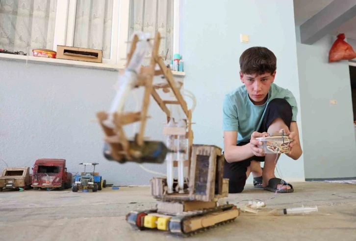 Aydın’ın Köşk ilçesinde yaşayan 14 yaşındaki Olcay Yalçın, teknolojiye olan merakıyla imkansızlıklara rağmen bulduğu atık malzemeleri geri dönüştürerek kendi uzaktan kumandalı robotik oyuncaklarını tasarlıyor. En büyük hayalinin kendi binebileceği küçük bir elektrikli araba yapmak olduğunu ifade eden Olcay, “İmkanım olsa daha iyi robotik aletler yapabilirim” dedi.
