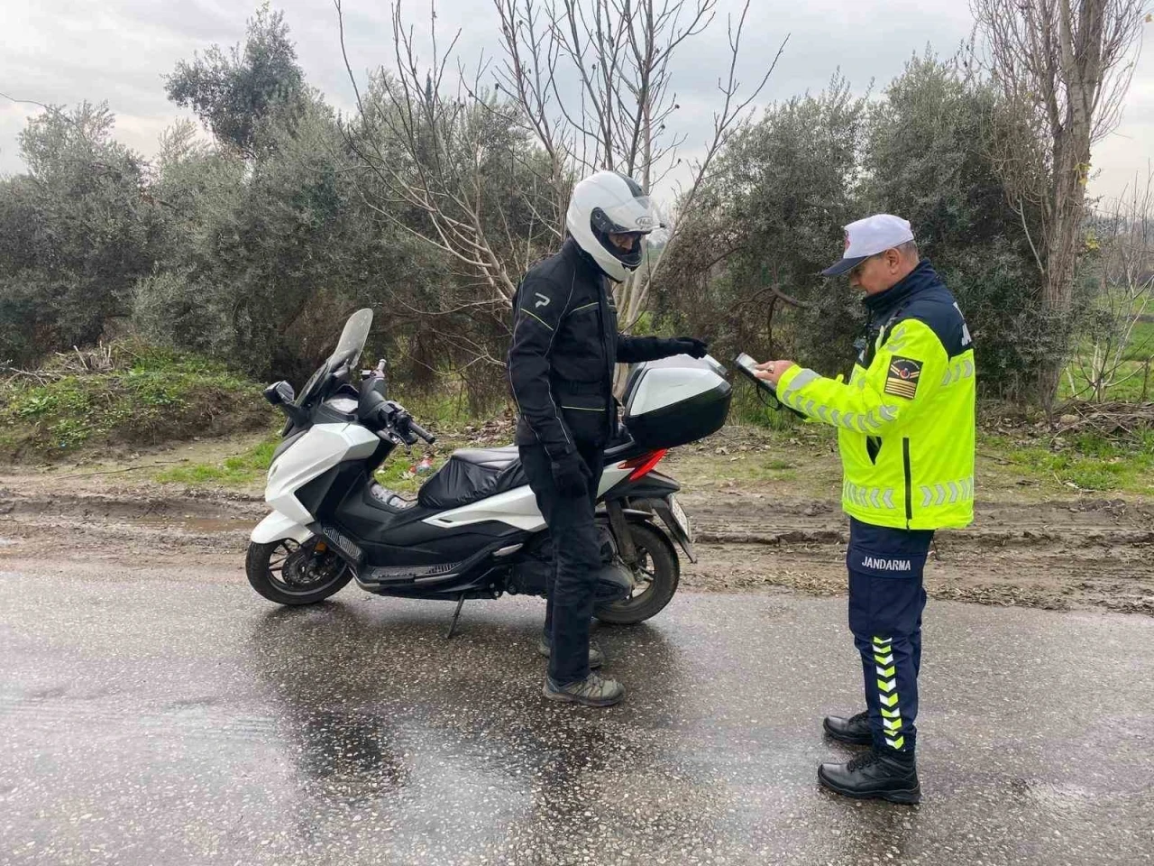 İncirliova ilçesi Dereağzı Mahallesi’nde bulunan vatandaşlara Trafik Jandarması tarafından “Kaskımla Güvendeyim” projesi kapsamında bilgilendirmede bulunuldu. Yapılan faaliyette Motosiklet/motorlu bisiklet/elektrikli bisiklet kullanımı ile ilgili koruma başlığı ve gözlüğü takmanın önemi, motosiklet sınıfına göre sürücü belgesi çeşitleri, tescil yaptırma, reflektifli yelek kullanımı ve hız kuralları konuları anlatıldı.
