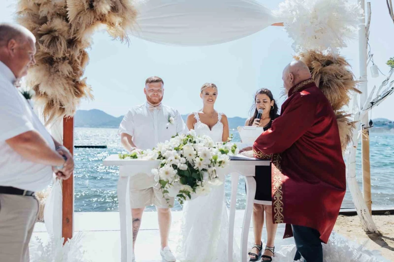 Muğla’nın Marmaris ilçesi, yalnızca denizi, güneşi ve doğal güzellikleriyle değil, aynı zamanda yabancı çiftlerin düğün tercihiyle de öne çıkıyor. Her yıl yüzün üzerinde yabancı çift, evlenmek için Marmaris’i tercih ederken, en çok ilgiyi ise İngiliz çiftler gösteriyor.