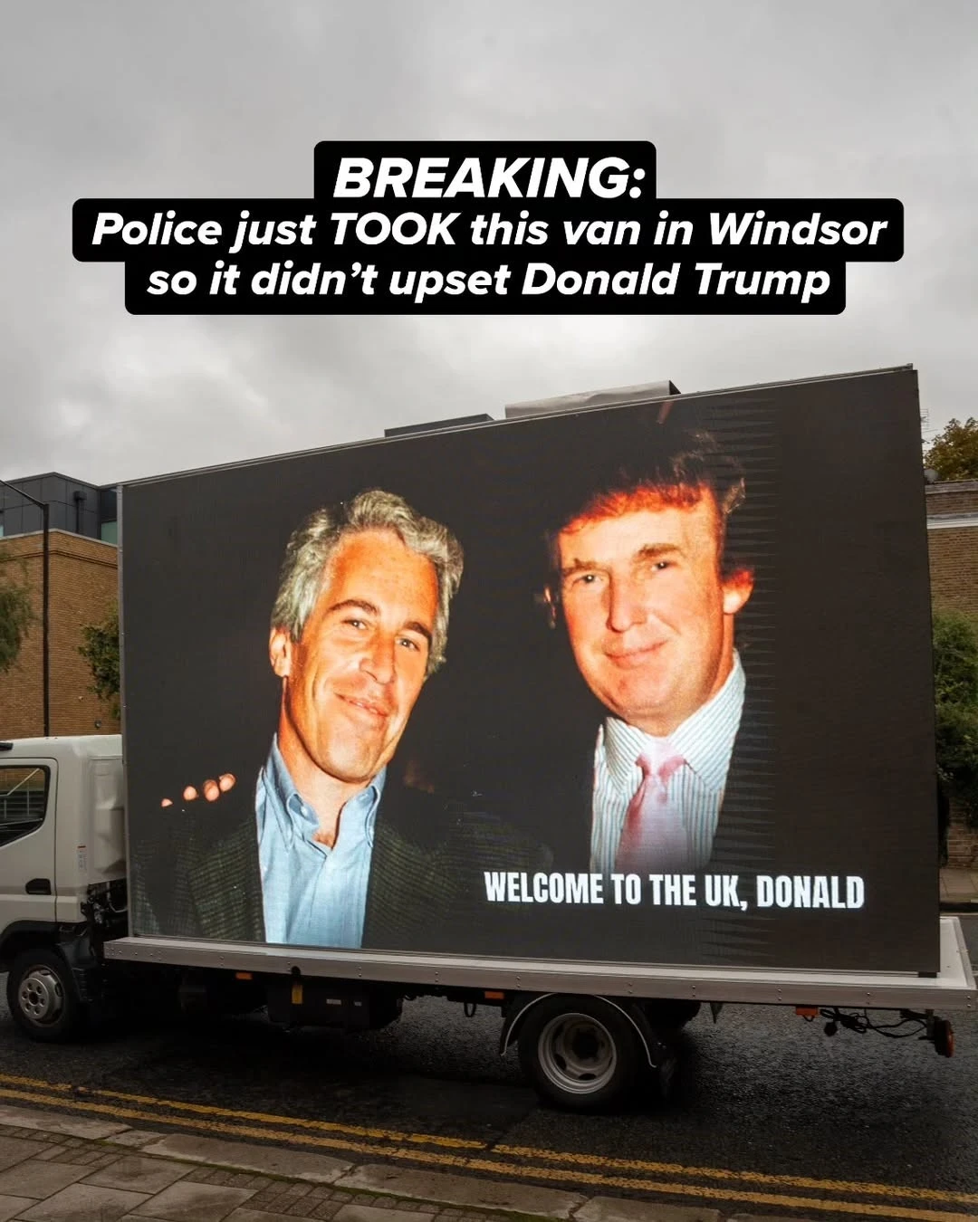 İngiltere’de ABD Başkanı Donald Trump’ın, cinsel suçlardan hüküm giyen Jeffrey Epstein ile olan fotoğrafını yayınlayan reklam aracına polis tarafından el konuldu.