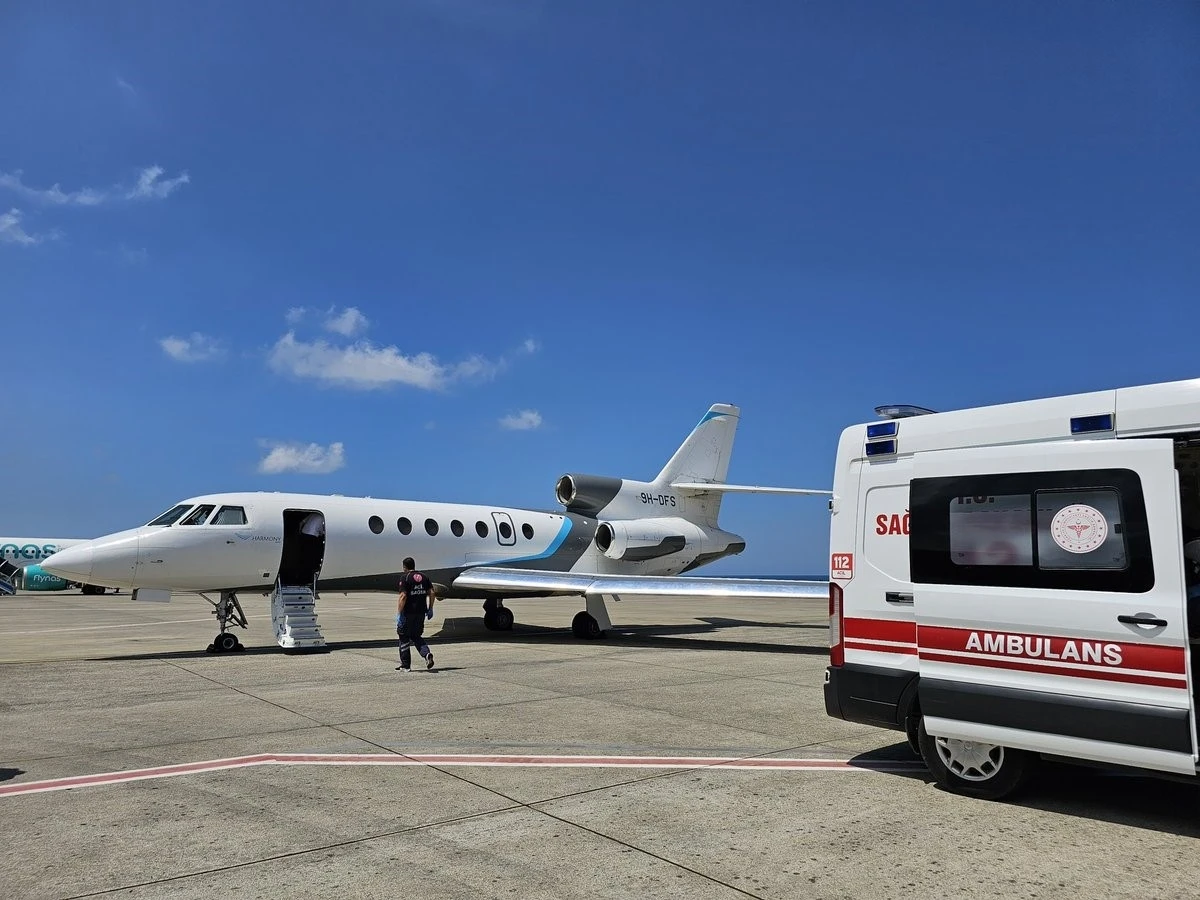 Bakan Memişoğlu sosyal medya hesabından yaptığı paylaşımında, "Tayland’dan İngiltere’ye nakledilen yabancı uyruklu bir hasta, uçuş sırasında oksijen tüplerinin tükenmesi nedeniyle Trabzon Havalimanı’na acil iniş yapan hava ambulansıyla ilimize getirilmiştir. Trabzon 112 ekiplerimiz, hava ambulansında ilk müdahaleyi gerçekleştirmiştir. Hasta, beyin kanaması pnömotoraks ve böbrek yetmezliği tanılarıyla Kanuni Eğitim ve Araştırma Hastanesi’ne nakledilmiştir. Gece boyunca acil serviste izlenen hasta, oksijen ikmalinin tamamlanmasının ardından bugün saat 12.30’da güvenle hava ambulansına tekrar alınarak İngiltere’ye sevk edilmiştir. Türkiye, güçlü sağlık altyapısı ve hızlı müdahale kapasitesiyle sadece kendi vatandaşlarına değil, uluslararası hastalara da güven vermeye devam ediyor. Bu süreçte görev alan tüm sağlık personelimize teşekkür ediyor, hastaya acil şifalar diliyorum" dedi.