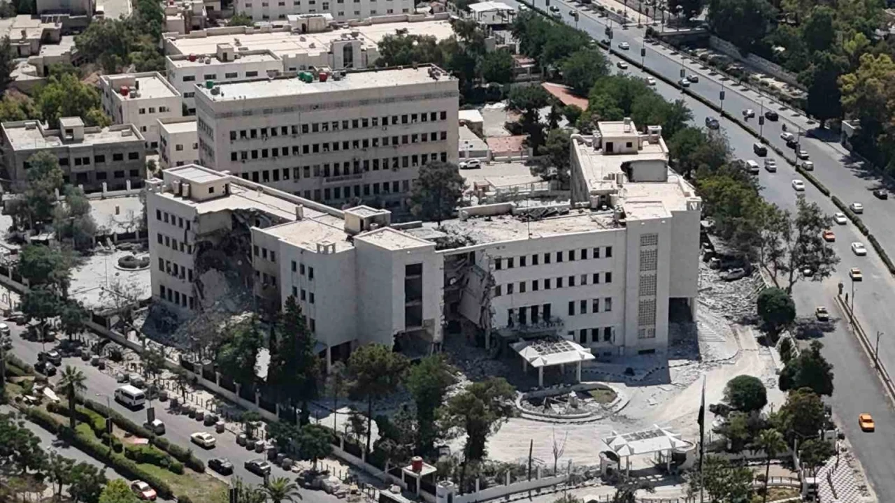 Suriye’nin başkenti Şam’daki Genelkurmay Başkanlığı binasında İsrail saldırılarının yol açtığı hasar havadan görüntülendi.