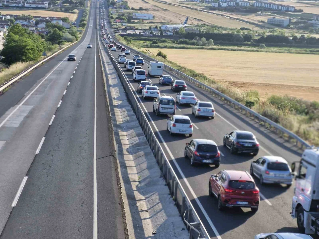 Bayram tatilinin başlamasıyla birlikte İstanbul’dan Trakya’ya doğru yoğun trafik akışı dikkat çekti. Özellikle Tekirdağ yönüne giden şeritlerde kilometrelerce araç yoğunluğu gözlenirken, İstanbul istikameti neredeyse bomboş kaldı. Tatilcilerin akını, akşam saatlerine kadar aralıksız sürdü.