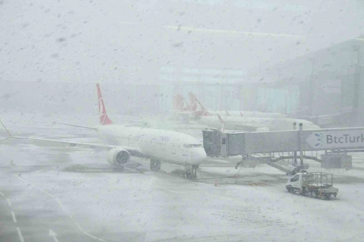 İstanbul Havalimanı’nda uçuşların aksamaması için yoğun çaba harcayan yetkililer, karla mücadele ekiplerini hazır bekletiyor. 24 saat aralıksız karla mücadele eden ekipler, sık sık pistlerde ve uçak park alanlarında kar temizlemesi yapıyor. Bu arada uçaklar ise buzlanmaya karşı alkol karışımı bir sıvı ile yıkanıyor.