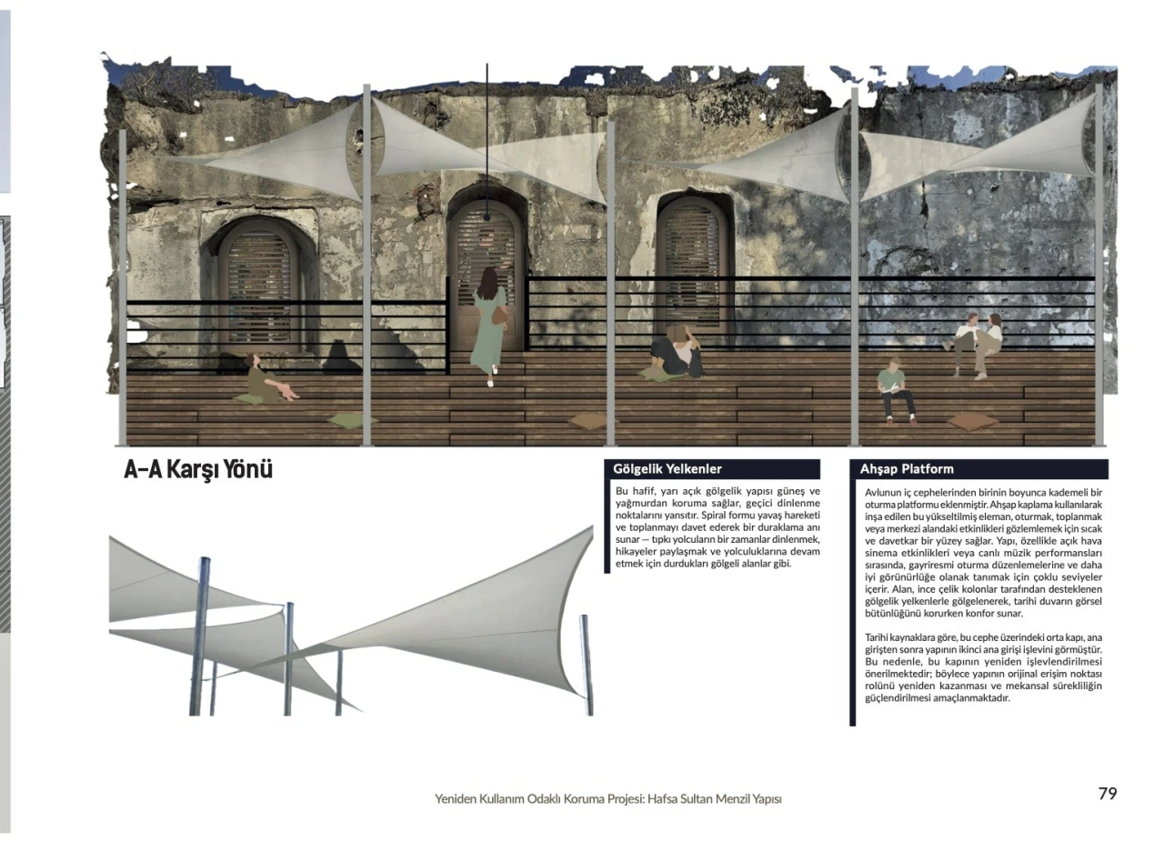 Projenin sahibi Elif Öncel ise şunları ifade etti: "Marmaris, dedem ve ailesinin yaz aylarındaki sık ziyaretleri nedeniyle çocukluk hatıralarımda önemli bir yere sahip. Hafsa Sultan Menzil Yapısı’nın geçmişteki canlı dönemlerini dinledikçe, bugünkü atıl durumunun Marmaris tarihi için büyük bir kayıp olduğunu düşündüm. Bu tarihi yapının yeniden kente kazandırılması gerektiğine inanarak bitirme tezimi bu konu üzerinde çalışmaya adadım. Tez savunmam sırasında Marmaris ve yapı, jüri üyeleri tarafından büyük ilgi gördü. Birçok kişi bu vesileyle Marmaris’i belki hayatında ilk kez tanıma fırsatı buldu. Proje hazırlık sürecinde katkı ve desteğini hiçbir zaman esirgemeyen Marmaris Ticaret Odası Başkanı Mutlu Ayhan’a özellikle teşekkür ediyorum. Tezimin kitaplaştırılması, hem çalışmanın daha geniş bir kitleye ulaşmasına hem de Marmaris’in tarihine sahip çıkılmasına katkı sağlayacak. Umuyorum ki bu önemli yapıyı en kısa sürede eski ihtişamlı haliyle yeniden ziyaret edebiliriz"