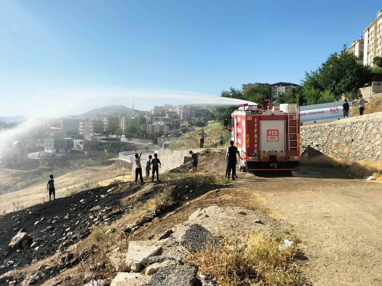 Şırnak’ta itfaiye ekiplerinin anız yangınına yaptığı müdahaleyi çocuklar eğlenceye dönüştürdü. İtfaiyeciler anız yangınını söndürürken, çocuklar tazyikli sudan faydalanarak serinleyip eğlendi.
