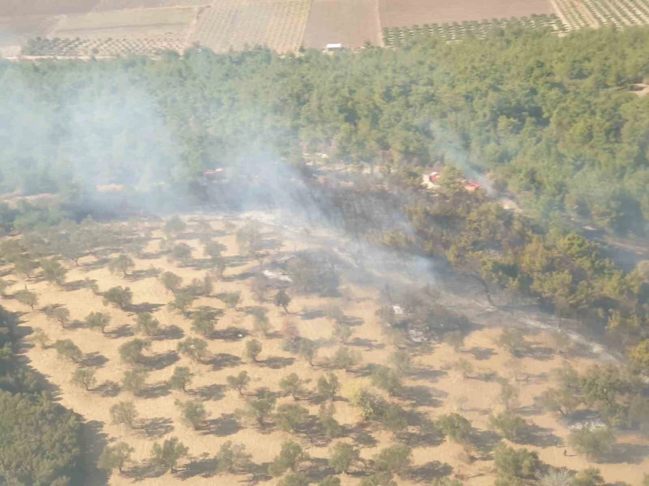 İzmir’in Kınık ilçesinde ziraat arazisinde çıkan yangın ormanlık alana sıçrarken, alevlere havadan ve karadan müdahale başladı. Yangın saat 12.32’de ilçeye bağlı Balaban Mahallesi’nde bulunan ziraat arazisinde meydana gelirken, alevler ormanlık alana da sıçradı. Yangının başlamasından 5 dakika sonra İzmir Orman Bölge Müdürlüğü ekipleri alevlere 4 uçak, 1 helikopter, 27 arazöz, 7 su ikmal, 4 dozer ve 2 yer ekibi ile müdahaleye başladı. Yangını kontrol altına alma çalışmaları sürüyor.