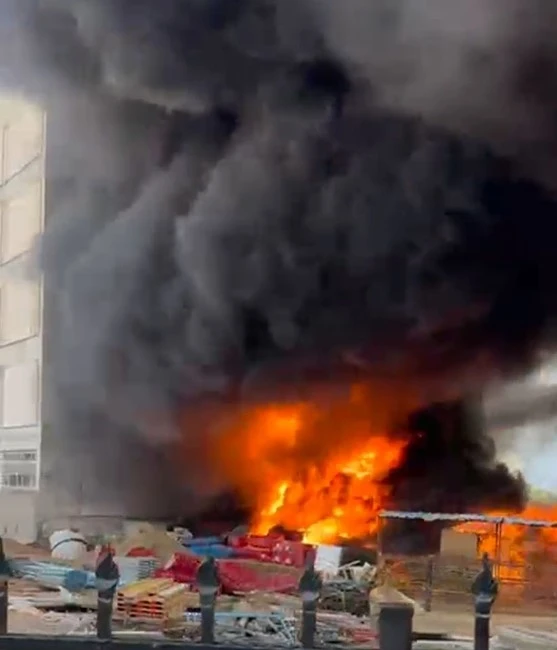 İzmir’in Bornova ilçesinde inşaat halindeki okulun bahçesinde bulunan malzemeler alev aldı. Bbölgeye gelen itfaiye ekipleri yangını kısa bir sürede söndürdü.