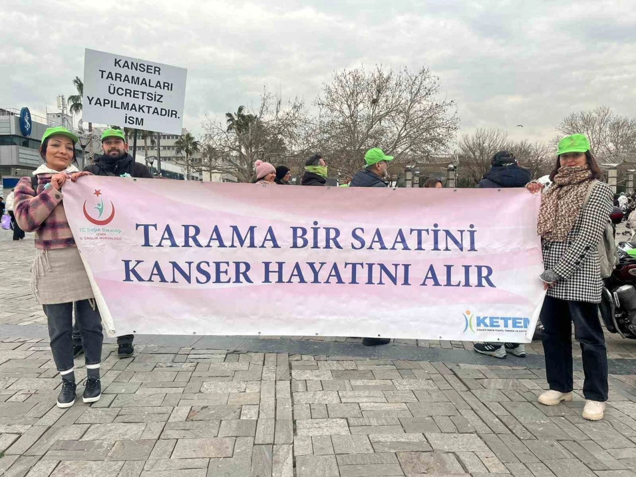 Dünyada kadınlar arasında kanser kaynaklı ölümlerin en sık nedenlerinden biri olan serviks kanserine karşı farkındalık oluşturmak amacıyla bisiklet turu gerçekleştirildi. Etkinlikte, serviks kanserinin simgesi olan yeşil şapkalar takan katılımcılar, Konak Meydanı’ndan başlayarak Gündoğdu Meydanı’na kadar bisiklet sürdü. Etkinlikte, erken tanının hayat kurtarıcı etkisi vurgulandı. "Geçen yıl 192 kadına tanı koyduk"