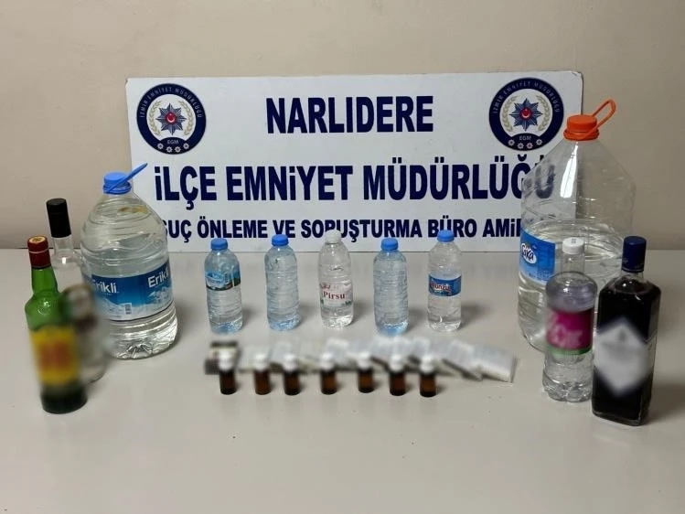 İzmir Narlıdere İlçe Emniyet Müdürlüğü ekipleri, yaklaşan yeni yıl öncesi ilçede kaçak alkol (bandrolsüz alkol) satışı yapan iş yerlerine operasyon düzenledi. Ekiplerce yapılan çalışmalarda; 1 litre pet su şişeleri içerisinde toplamda 17 litre etil alkol, pet şişe içerisinde 9,5 litre bandrolsüz rakı, plastik bidon içerisinde 5 litre votka, cam şişe içerisinde 1 litre bandrolsüz şarap, cam şişe içerisinde 500 mililitre viski, 7 adet rakı kiti, 17 adet bandrolsüz sigara, 12 adet bandrolsüz sarma sigara, 17 paket cinsel güç artırıcı bandrolsüz macun ve 2 paket elektronik sigara kiti ele geçirildi.