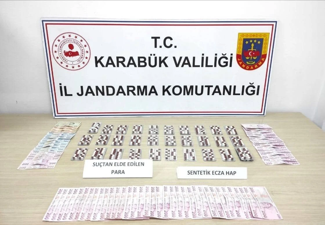 Karabük’te jandarma ekiplerinin düzenlediği operasyonda 426 adet uyuşturucu hap ile 12 bin 170 TL ele geçirildi.