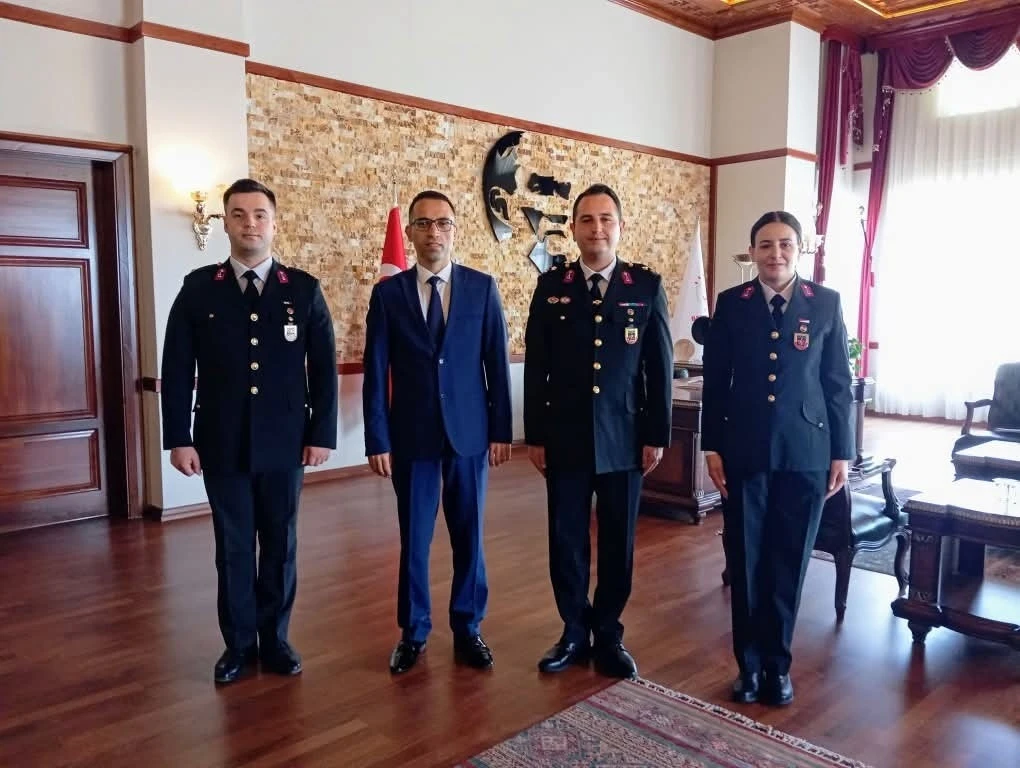 Jandarma Teşkilatının 186. kuruluş yıl dönümünde İlçe Jandarma Komutanı Üsteğmen Oğuzhan Yılmaz İlçe Jandarma Karakol Komutanı Teğmen Berkay Bakkal ve Astsubay Üstçavuş Zeliha Ceylan Çakır Beypazarı Kaymakamı Vedat Yılmaz’ı makamında ziyaret etti.