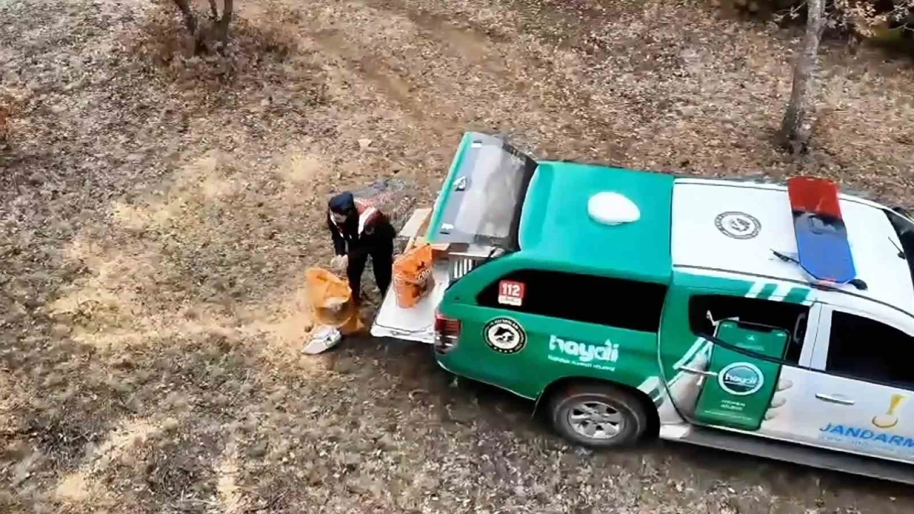 Kırıkkale’de jandarma ekipleri, soğuk hava şartlarında yiyecek bulmakta zorlanan yaban hayvanları için ormanlık alanlara yem bıraktı. Bir tilkinin beslenme görüntüleri fotokapan kamerasıyla kaydedildi.