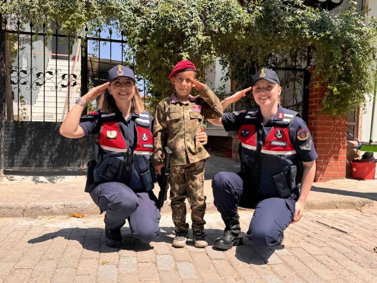 Kahramanlarımızın hatırasının yeni nesillerde nasıl yaşadığını ve isimlerin nasıl gönül köprüleri kurduğu vurgulanarak çocuğa komando üniforması, jandarma arabası ve Türk Bayrağı hediye edildi.