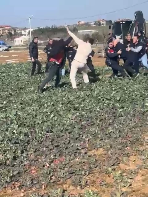 Marmaraereğlisi Belediyesi, tarım arazileri üzerine inşa edildiği iddia edilen kaçak yapılarla ilgili çalışma başlattı. Çalışma kapsamında yıkım kararı alınan yapılardan biri için zabıta ekipleri, iş makinesiyle birlikte Çeşmeli Mahallesi’ne gitti. Yıkıma karşı çıkan yapı sahipleri ile zabıta ekipleri arasında önce tartışma yaşandı. Tartışmanın büyümesiyle çıkan kavga, tekme ve yumrukların havada uçuştuğu bir arbedeye dönüştü. Dakikalarca süren kavga anı vatandaşlar tarafından cep telefonu kamerasıyla kaydedildi.