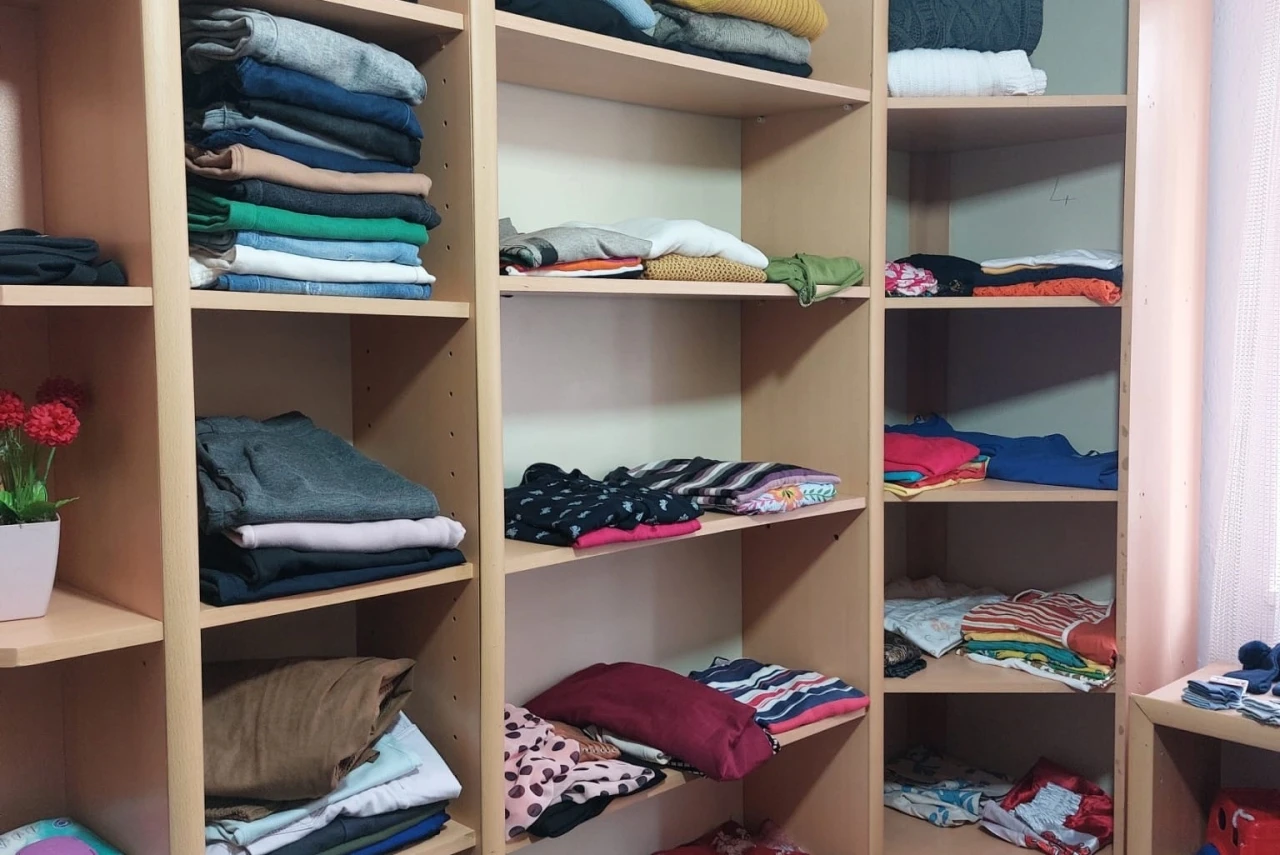 Muhtarlık ofisinin yanında açılan Mutlu Giyim Evi’nde ayakkabıdan gömleğe, kabandan kazağa her türlü bay ve bayan giysileri askılarda ve raflarda dar gelirli ihtiyaç sahipleriyle buluşmayı bekliyor.
