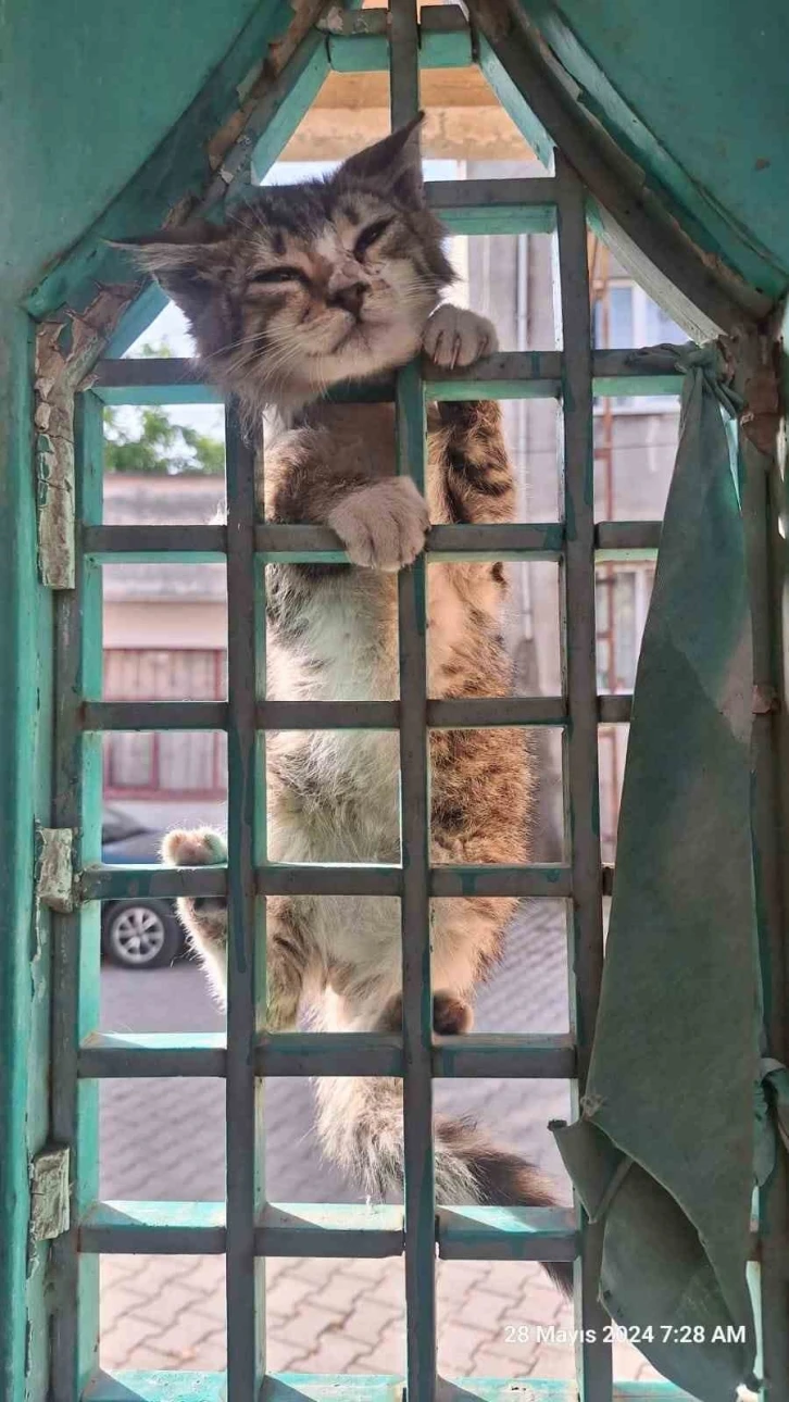 Kahramanmaraş’ta kafası demir kapıya sıkışan kedi itfaiye ekiplerince kurtarıldı.
