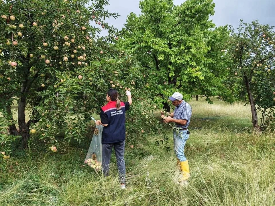 Kağızman İlçe Tarım ve Orman Müdürlüğü ekiplerince yürütülen çalışmalarda, elma bahçelerinden alınan numuneler laboratuvara gönderilerek pestisit kalıntı düzeyleri incelenmeye başlandı