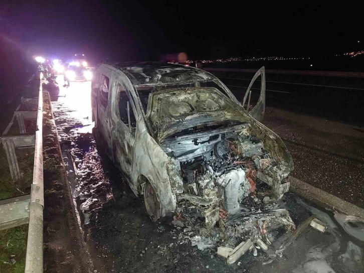 Kahramanmaraş - Gaziantep karayolu üzerinde seyir halindeki bir araçta yangın çıktı. Sürücüsünün ismi öğrenilemeyen hafif ticari araç seyir halindeyken bir anda yanmaya başladı. Çıkış nedeni belirlenemeyen yangına ihbar üzerine itfaiye ekipleri sevk edildi.